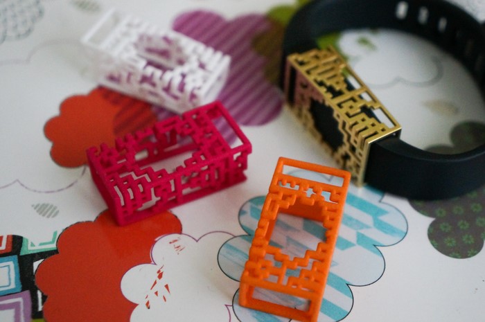 Bytten presents a whole new way to decorate your fitband and make fitness fashionable. Their 3D-printed slides, which come in silver, brass, and ten shades of plastic, slide easily onto the fitband and instantly change the look and feel of it entirely. Where Design.UX disguised the fitband as a bangle, Bytten adds geometry, colour and structure to the otherwise bland fitband and turns it into a piece of jewelry. Here’s how I styled my Fitbit Flex with four of the slides from the lucas collection, designed by Lucas Goossens: brass, pink, white, and orange.
